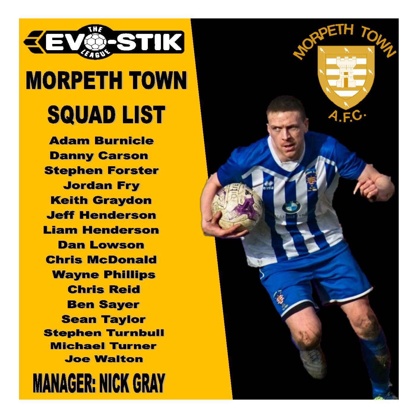 Morpeth Town can confirm the players who will form the squad for our first season in Evo-Stik East.